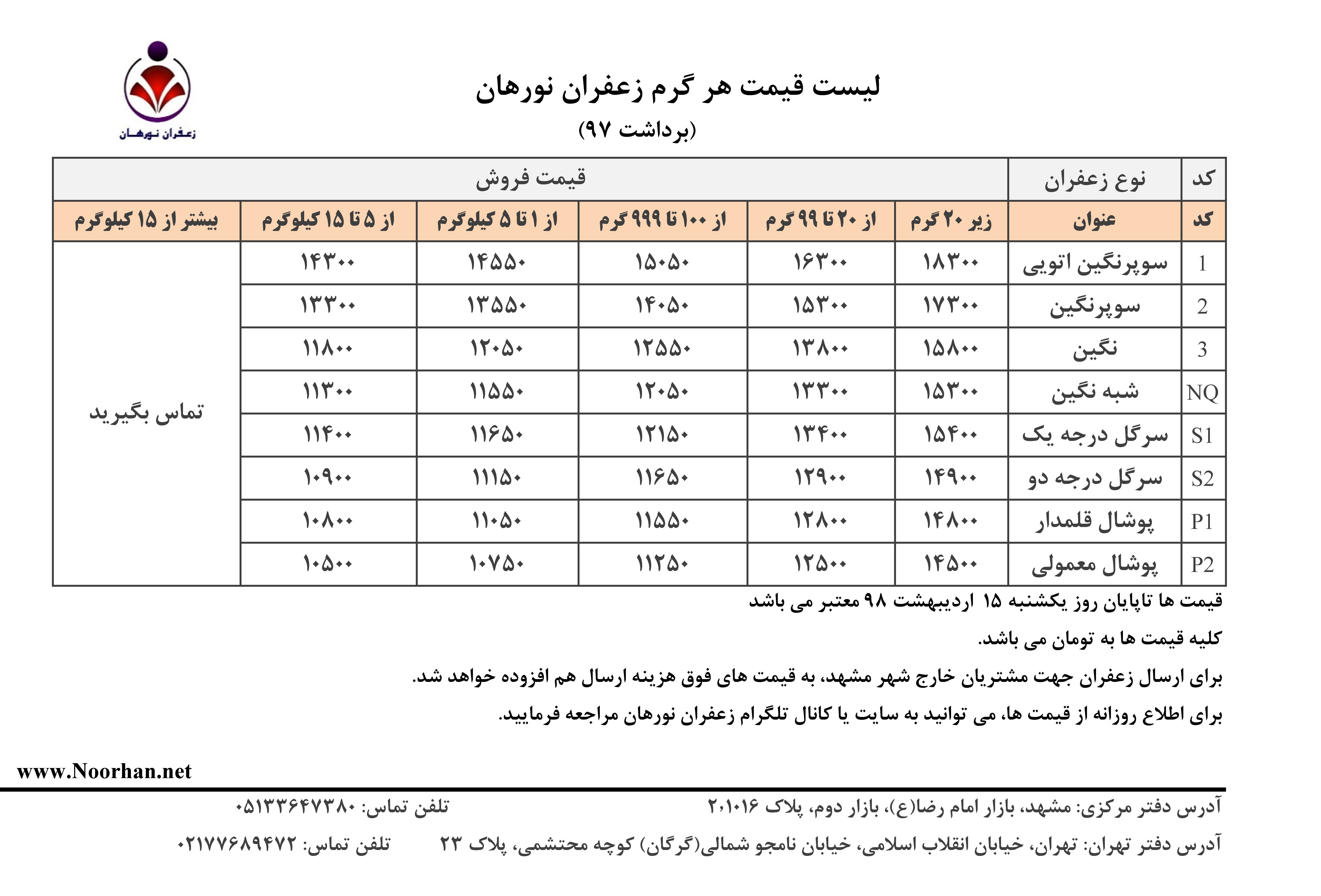 لیست قیمت فروش زعفرانSell Saffron