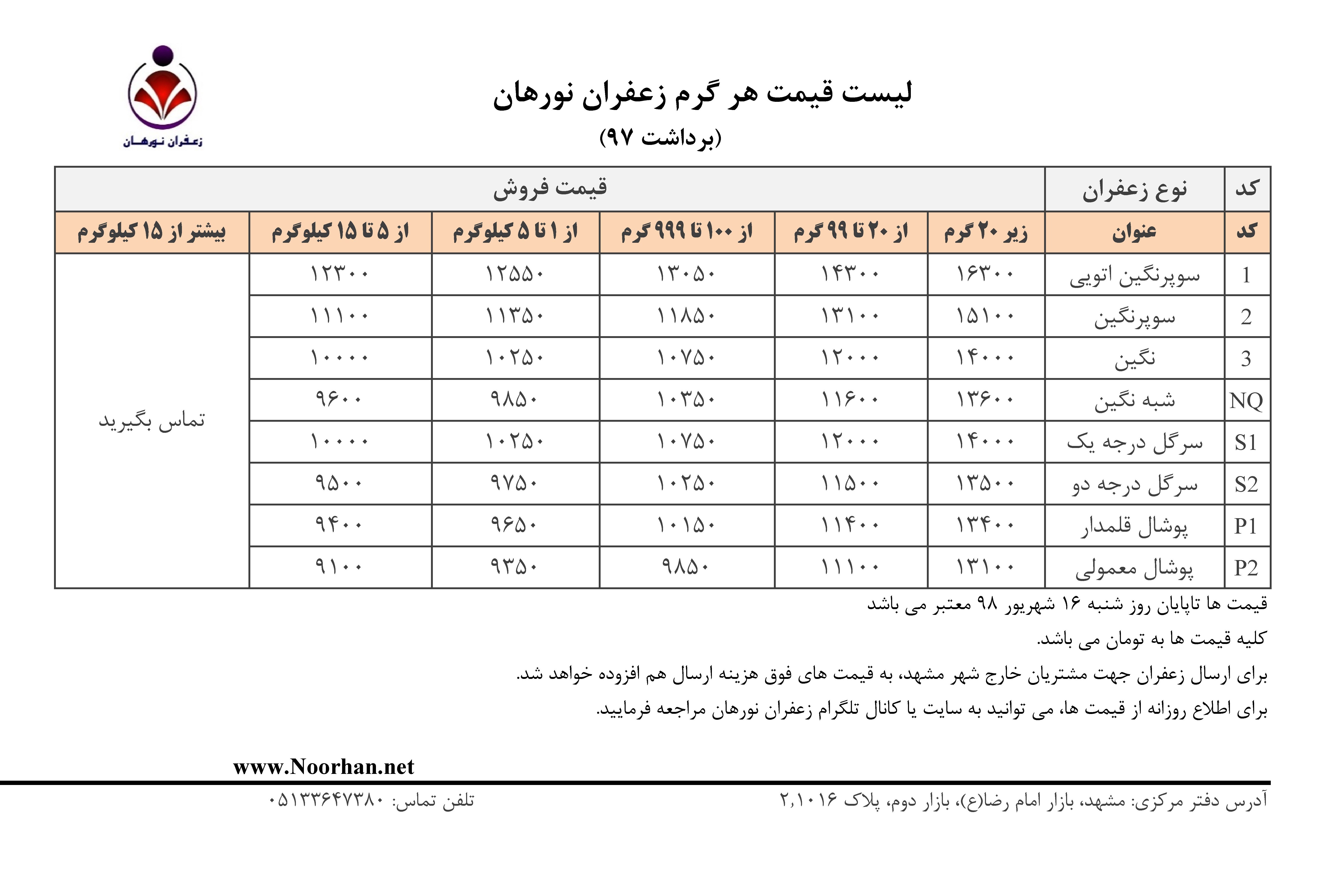 لیست قیمت انواع زعفران در بازار